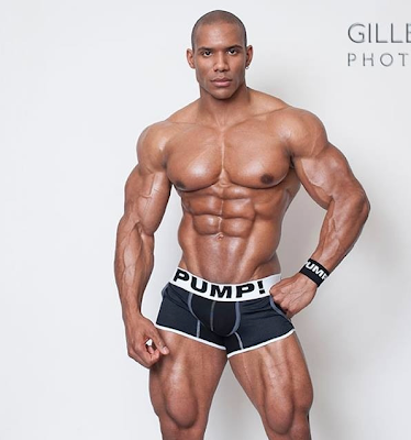 Look at those shoulders; then look at how the cephalic vein runs down the length of his biceps. Then: take in that chest. Full, round, thick and hard pecs!